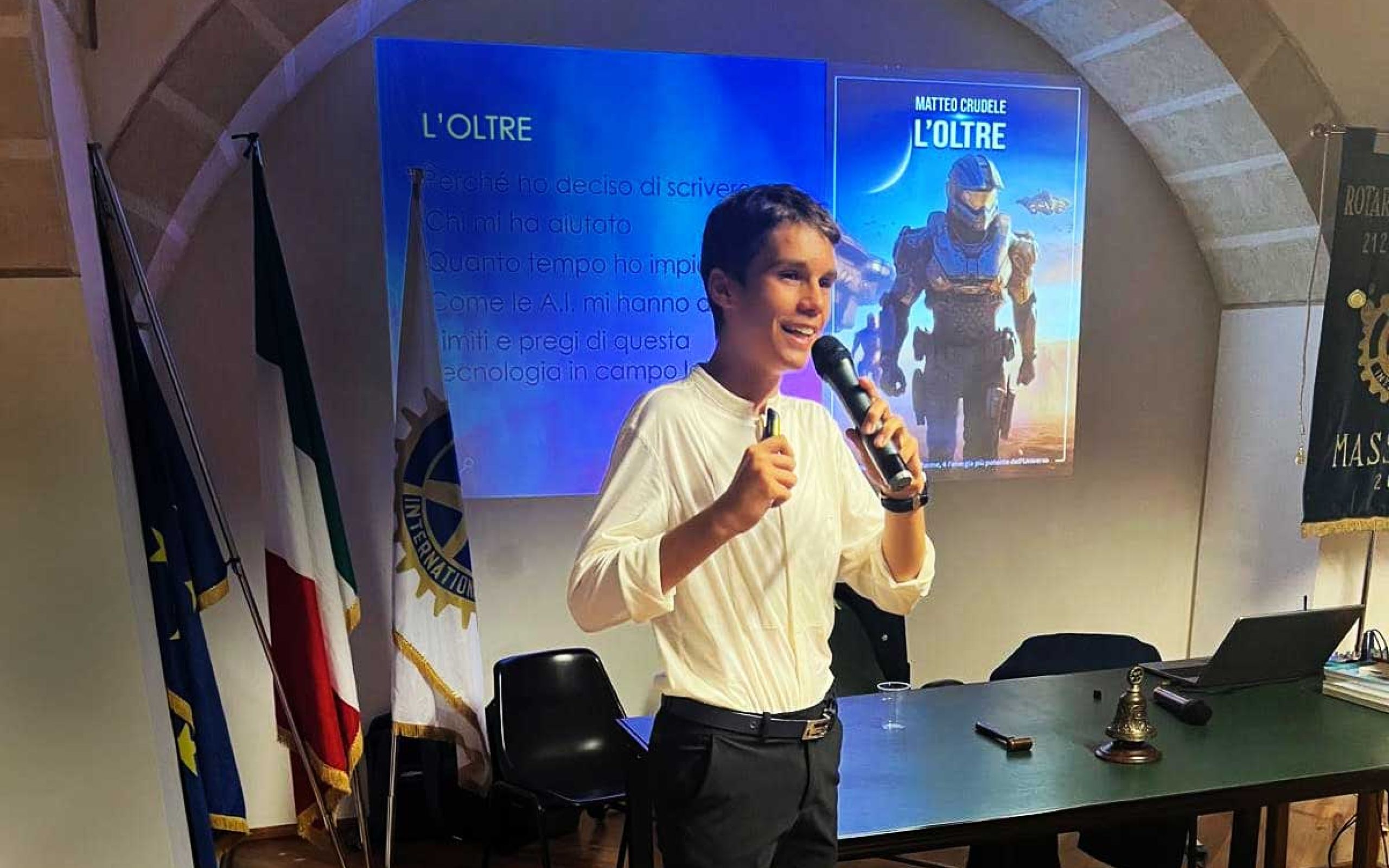 Ciao sono Matteo ed ho 15 anni, questo è il mio website, creato in seguito al primo romanzo che scrissi quasi per gioco. Mi chiedevo come fare per creare una tesina, in terza media, che parlasse delle Intelligenze Artificiali... ed ho pensato “ma perchè non far vedere direttamente cosa si riesce a fare con queste strane tecnologie?” Ho quindi voluto sfruttare le potenzialità delle A.I. per usarle come se avessi a disposizione un team di tanti grafici professionisti, revisionisti di bozze e illustratori, in modo da potermi concentrare meglio sull’aspetto creativo invece di impazzire fra le varie stesure tecniche del libro. Ed ecco che mi son ritrovato a pubblicare un romanzo di fantascienza che avevo in mente da tempo, scritto da me con l’uso le A.I. generative... non certo da loro, anche perchè, provateci: le A.I. da un punto di vista creativo sono estremamente monotone.