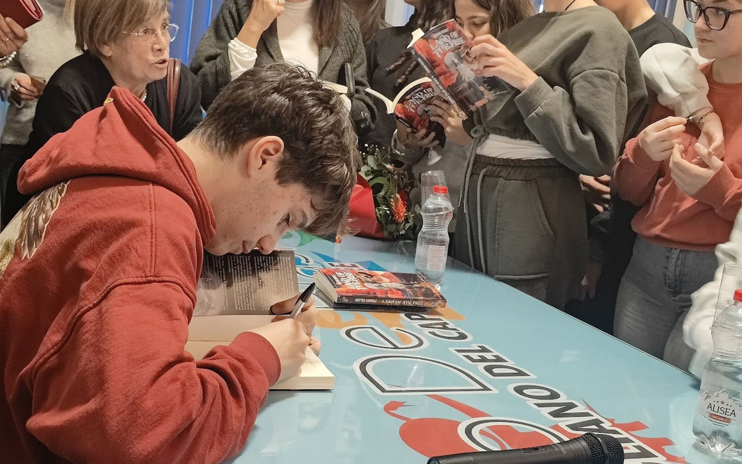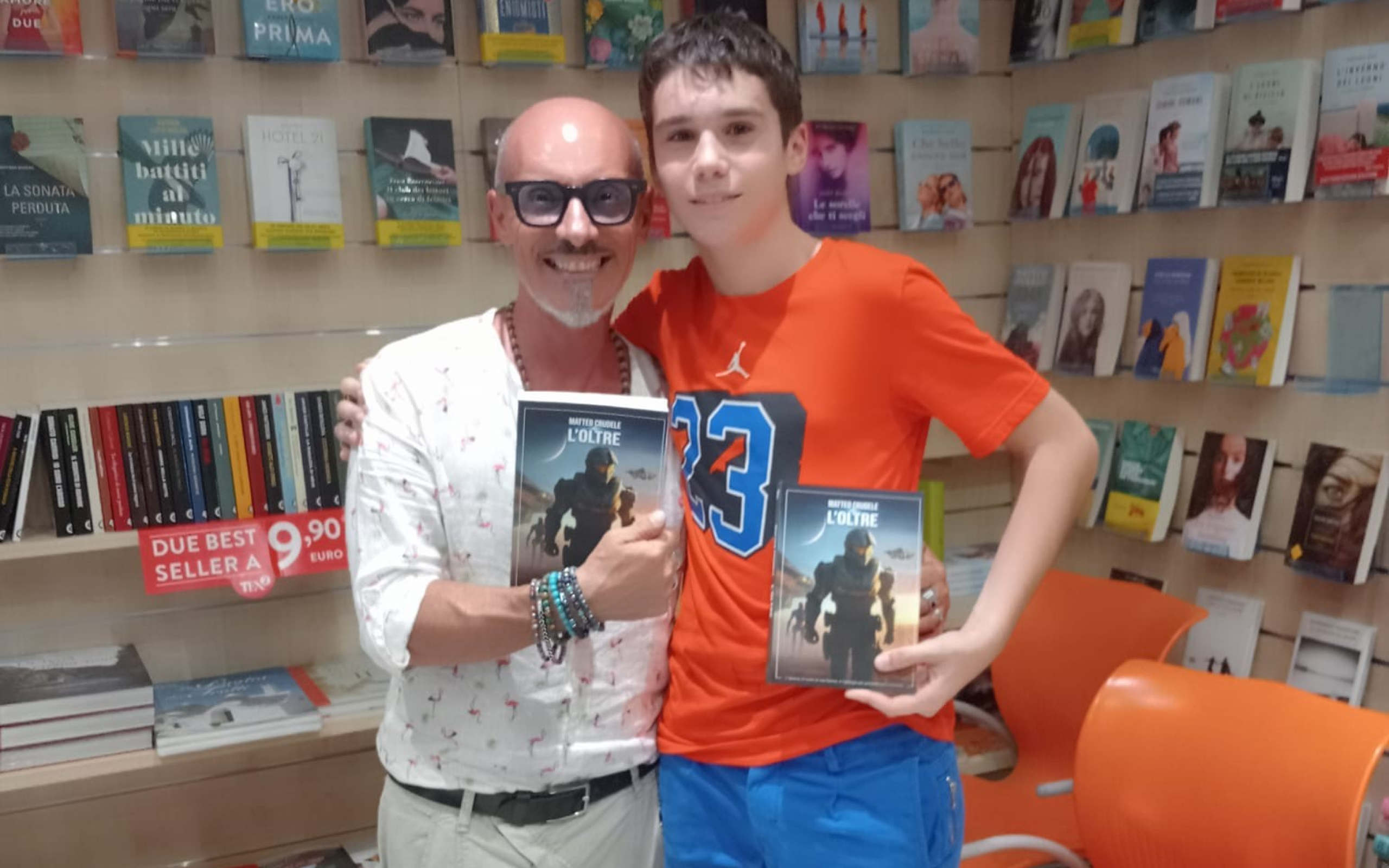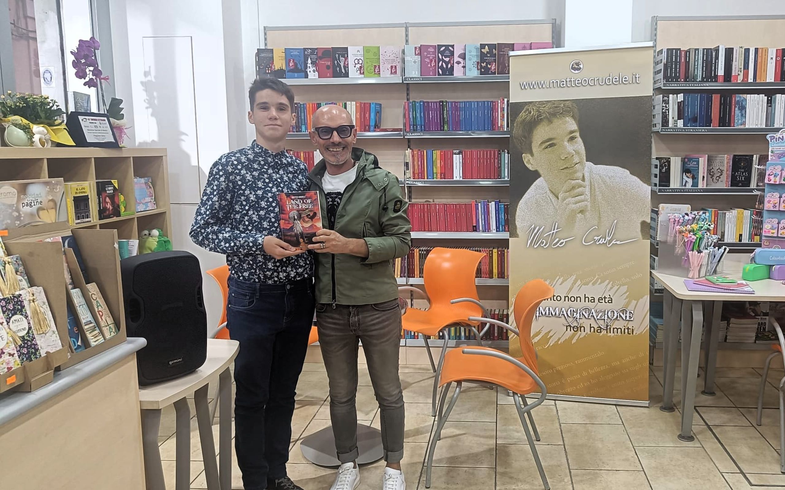 Il primo firmacopie, nella libreria IMAN, con lo scrittore Salvatore Fuggiano che ha tenuto "a battesimo" la carriera di Autore di Matteo.